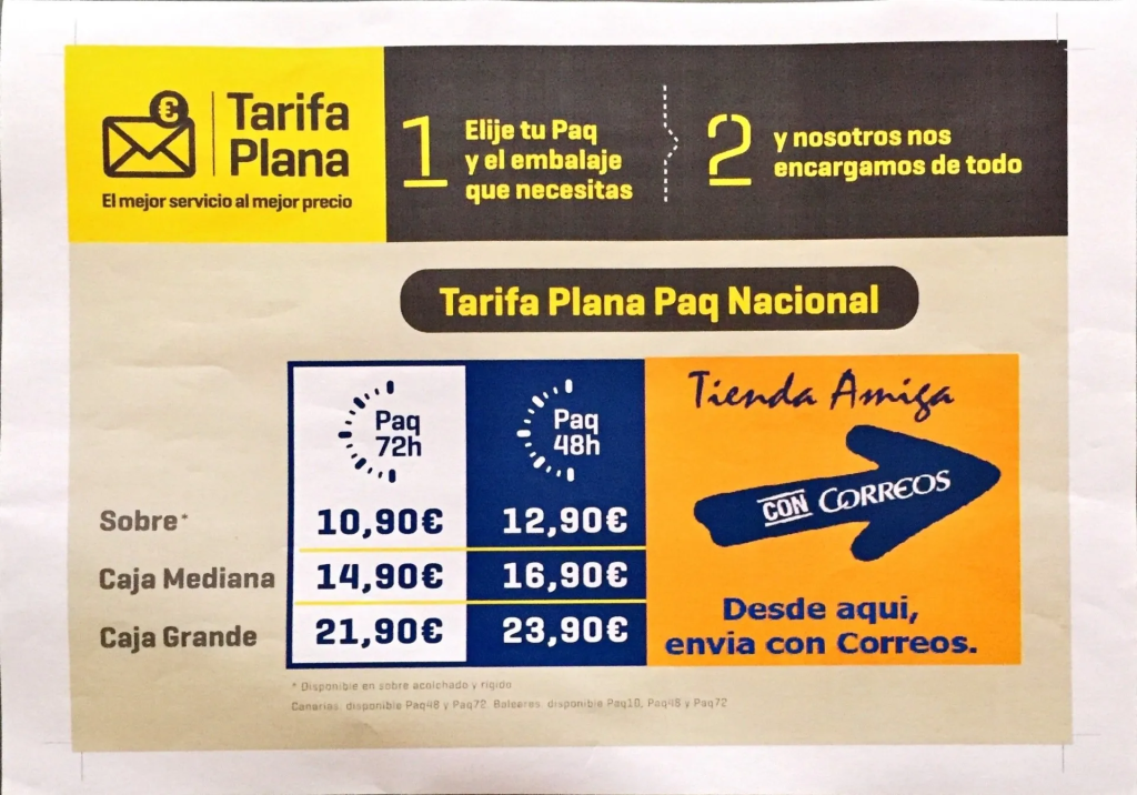 Si necesitas enviar equipaje o cualquier otro paquete, puedes hacerlo con Correos. Tarifa plana con diferentes opciones según el tiempo de entrega.